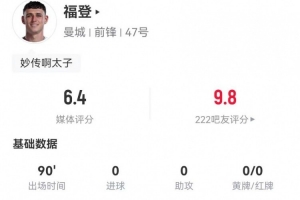 体育资讯12月21日讯 曼城在本轮英超3-0完胜西汉姆,福登本场数据如下:
