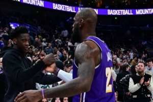 2026届NBA选秀热门球员AJ·迪班萨更新Instagram Story,晒出自己近日现场观看爵士主场迎战湖人比赛赛后与詹姆斯拥抱的照片。