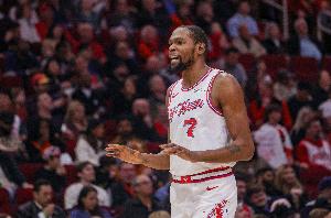本场比赛,火箭球星杜兰特表现还不错,场上很全能,在37分钟的时间里,投篮15中8,三分球7中2,罚球4中4,拿到22分5篮板11助攻的数据,但也有多达6次失误,正负值+11。