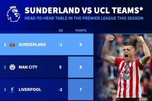体育资讯1月2日讯 英超已经进行了19轮,《转会市场》统计了本赛季至今英超联赛对阵本赛季欧冠参赛球队的拿分情况,升班马桑德兰9分最高。
