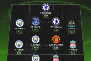 后卫:努内斯(曼城,7.61分)、迈克尔·基恩(埃弗顿,7.61分)、韦斯利·福法纳(切尔西,7.58分)、刘易斯·霍尔(纽卡斯尔,7.33分)